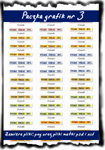 Nawiązując do „starej tradycji” comiesięcznych Prezentów dla Czytelników Bloga, udostępniam dla Ciebie kod rabatowy, który wygeneruje 30% upustu na Mega Paczkę Grafik, których część możesz zobaczyć na obrazkach poniżej.